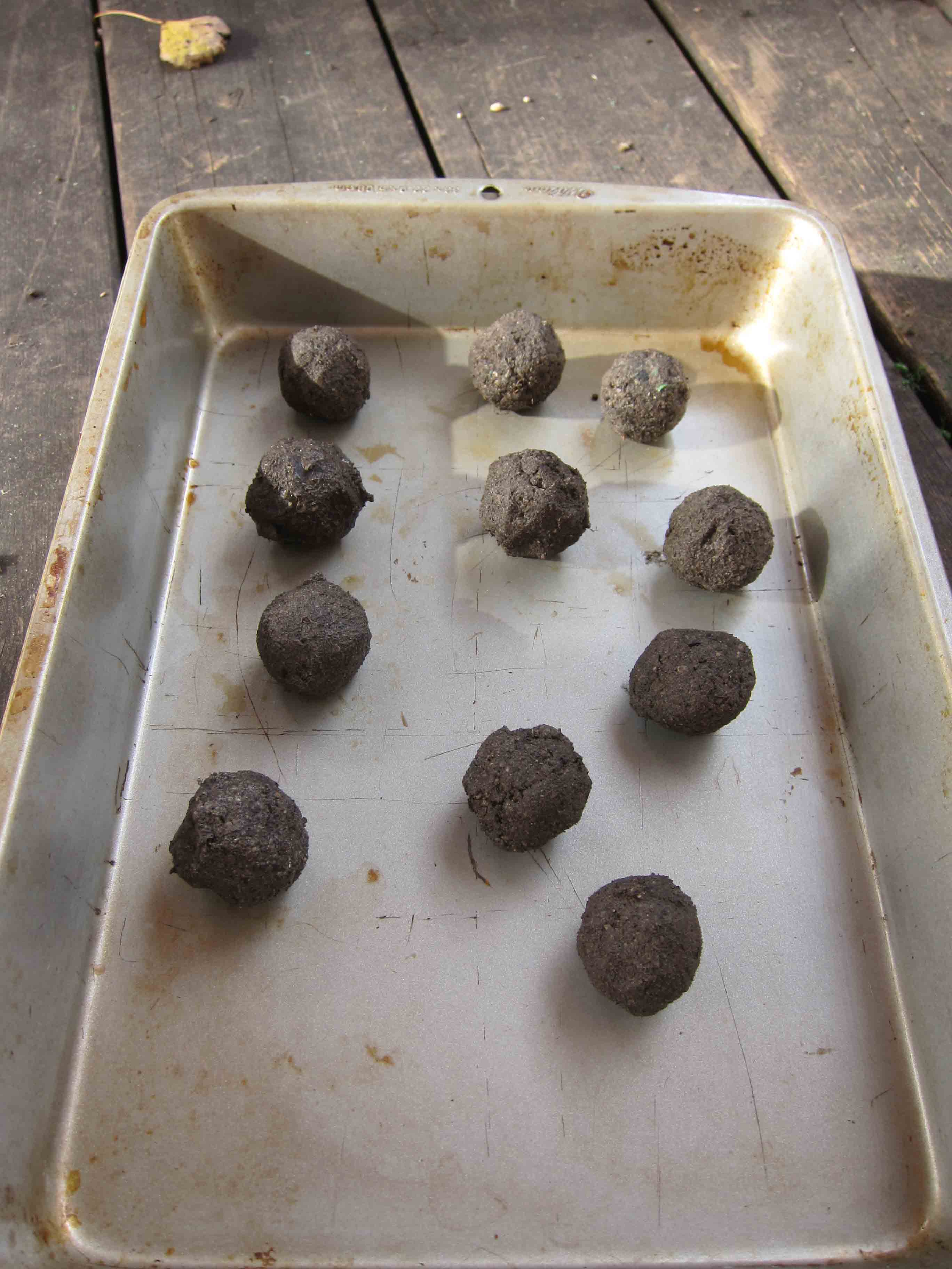 Take enough dirt/clay to make a gumball sized ball. Stick a seed in the center and roll the clay/dirt around it.