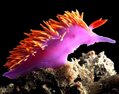And last, but certainly not least… Flabellina Iodinea which inhabits the cooler waters from the Galapagos to our own British Columbia. Flabellina is the wild stallion of sea slugs and is the bad boy every sluggette loves.