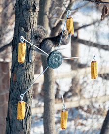 The squirrel-go-round requires some pretty fancy footwork from squirrels that need to dance for their dinner. Attach corn or carrots to the end of the spikes and then sit back and watch.
