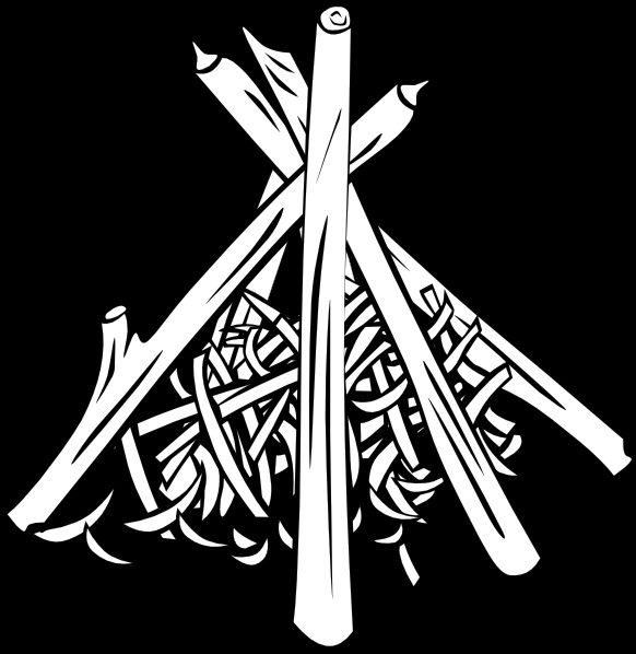 This is a good one for boiling water or cooking smores and will work nicely for heat too. It’s quick and easy. Place a couple of balled up pieces of paper or some birch bark in the center, then lay the kindling around in a teepee style. If the wood is wet, start small. Leave gaps between the kindling so air can get in. Light the paper or birch and blow gently on the flames.
